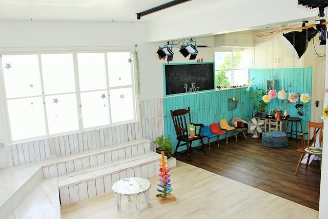 オーナーでカメラマンの鈴木さんがご自分のお子さんの七五三祝いの記念写真を撮りに行った時のこと、おすまし顔で撮影するのが一般的な記念写真ですが、撮影した数枚の中で娘が「バンザーイ」している1枚があって、その写真が一番我が子らしくて可愛くて思わずその写真を選んだそうです。それがきっかけで、子供の成長記録を「自然しぐさ」で撮影するスタジオをやってみたい、2014年5月にオープンさせました。では、スタジオを紹介します。