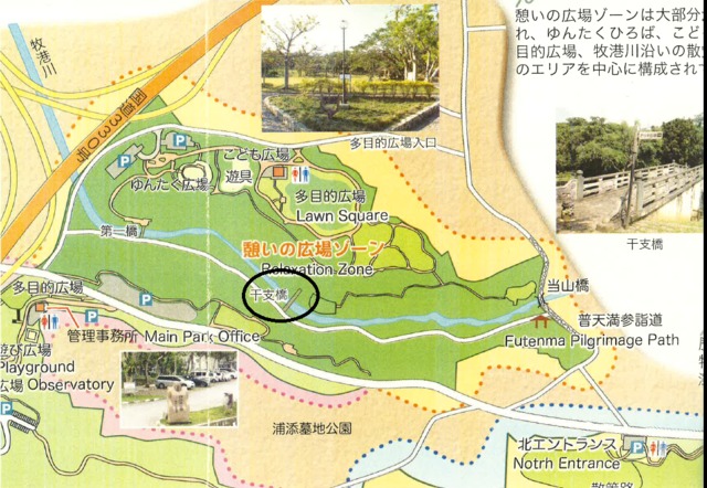 これで憩いの広場ゾーン一周です。所要時間はゆっくり歩いて1時間くらいです。自然の植物や生物の宝庫「憩いの広場ゾーン」です。ウォーキング・ピクニック・自然観察・歴史学習といろいろな楽しみ方のできる浦添大公園「憩いの広場ゾーン」へお越し下さい。