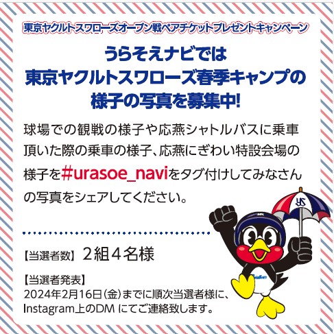 東京ヤクルトスワローズオープン戦ペアチケットプレゼントキャンペーン!