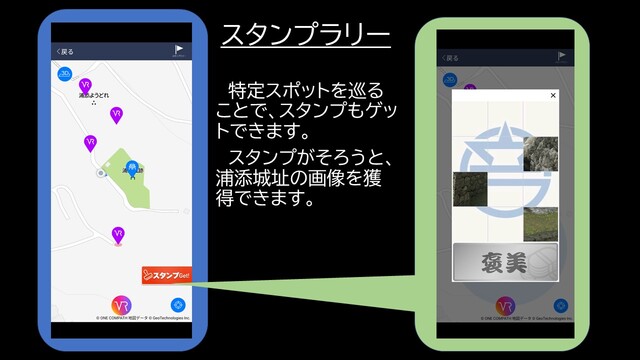 浦添のまちを歩きながらその歴史に出会える楽しみ、失われた重厚な城壁や、幻想的な「ようどれ」を、ストリートミュージアム🄬を使って、お手持ちのスマートフォンで体験できます。スタンプラリー制覇で貴重なグスク画像を入手できます。